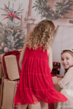 Vestido de nena confeccionado en microtul rojo y forro de jersey.