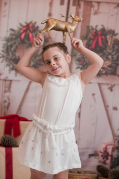 Remera de nena confeccionada en viscosa, sin mangas y con volado de broderie en el escote.